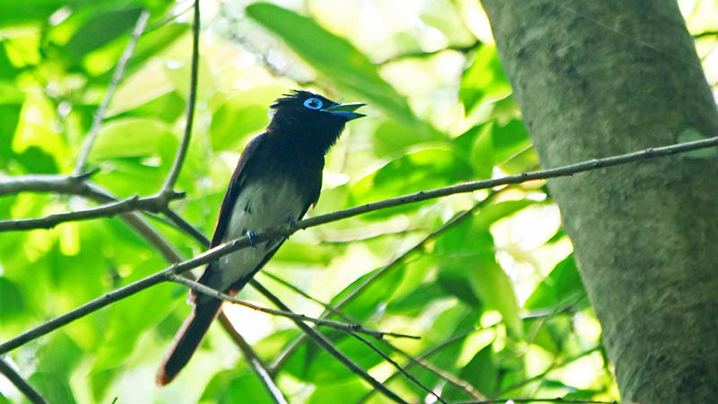 その後は鷹鳥屋神社へと行くと、クロツグミやサンコウチョウの鳴き声。