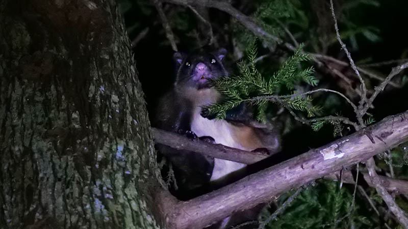 鹿の鳴き声・フクロウが飛んできたと思ったらムササビに会えたり・・