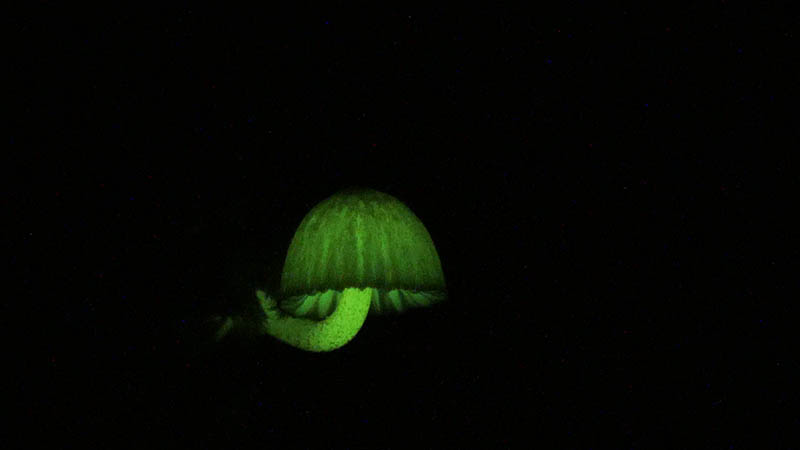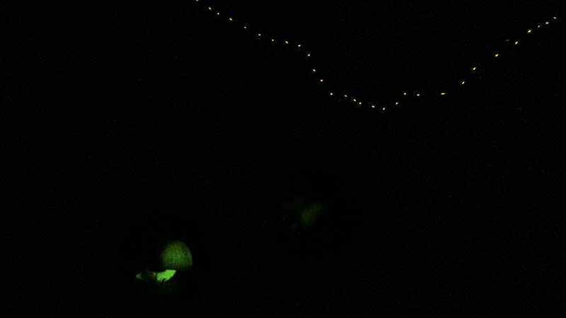 暗闇の中から、ケミホタルミニよりも小さな淡いグリーンの光が4つ。