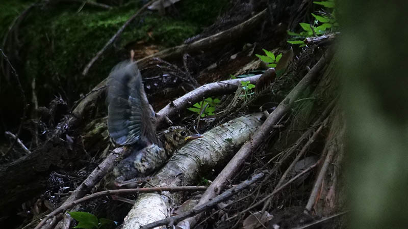 停車して待つと、一度飛び立ったトラツグミが近くまで戻って来た。