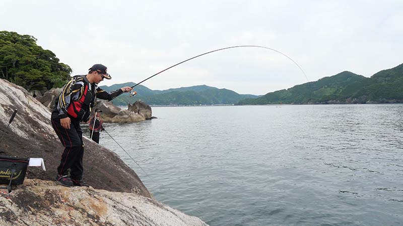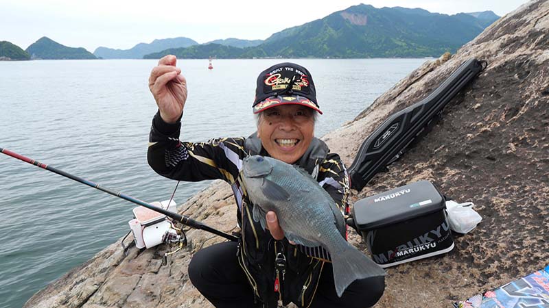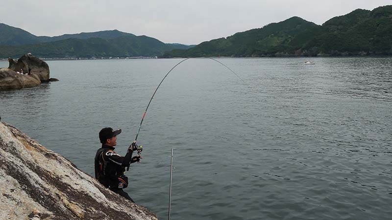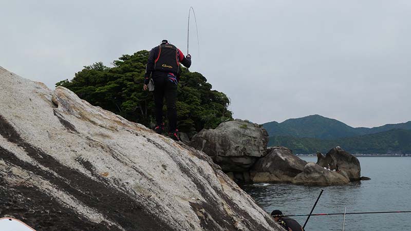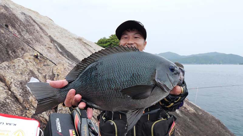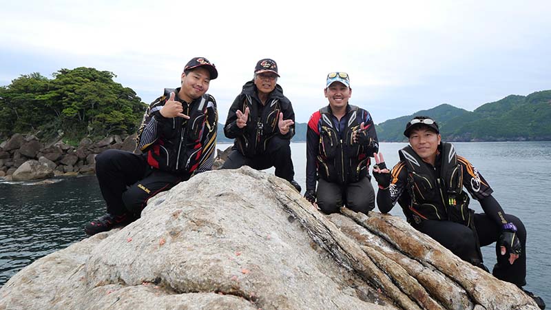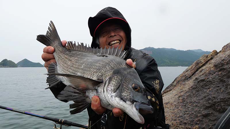 あとは4名でそれぞれ思い思いの場所で竿を振り、岩の周囲全てから中型グレが踊りだすほど、湾内にしてはグレの魚影が濃い場所で、夕マズメには古賀君がキロオーバーを引き出したり、終始若手釣り師と楽しい釣行になったのです。