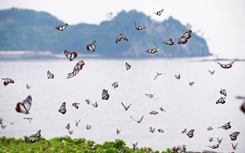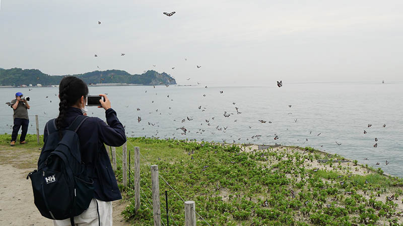 姫島村のHPでシーズン中、アサギマダラ情報が出ますが8時の数を参考に。