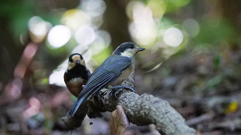 ゴジュウカラの親子 左が幼鳥