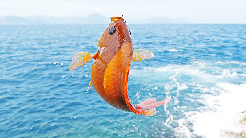 遠投しても仕掛けが磯際に来て、ミナミスズメダイやゴンべなど