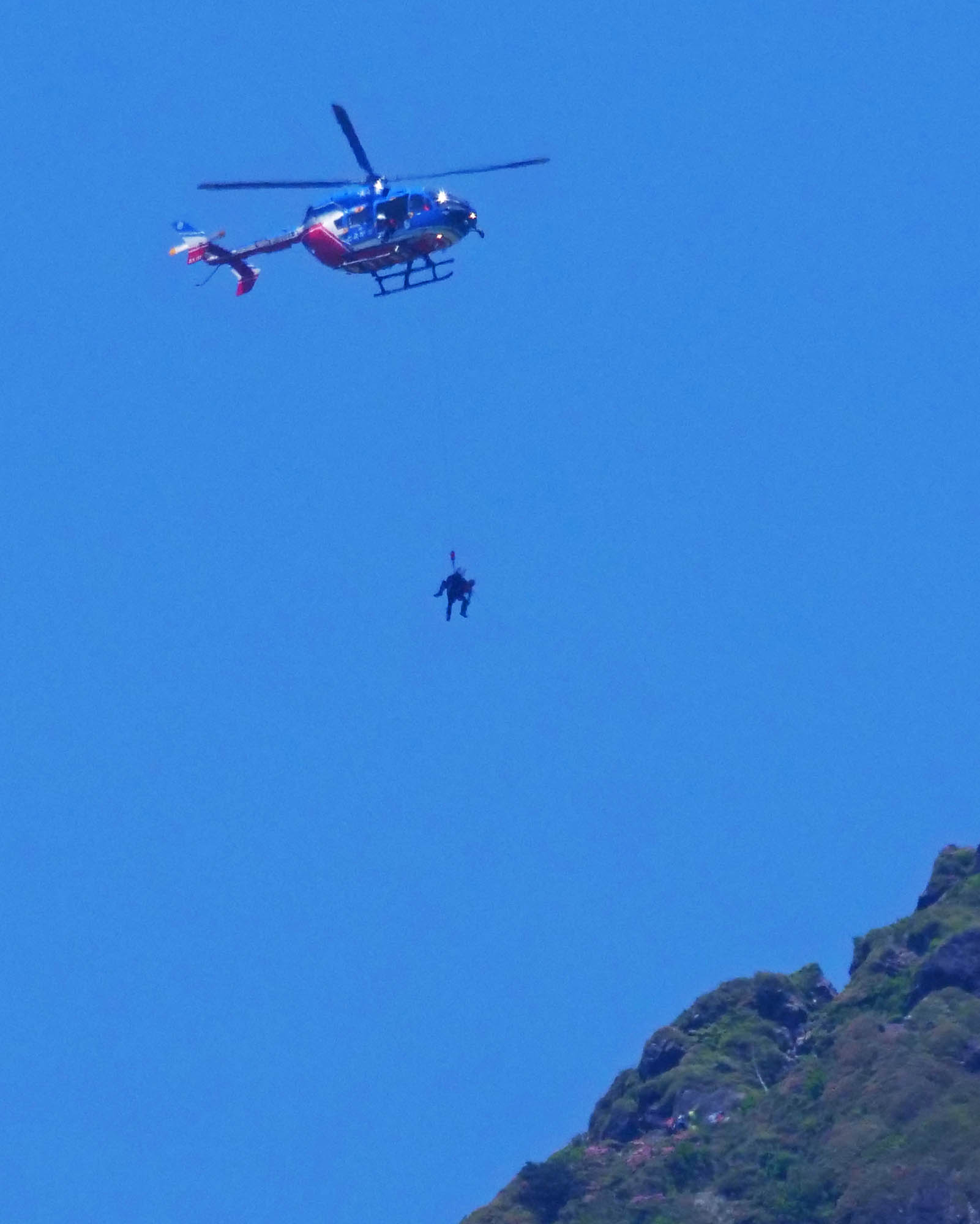 由布岳西峰では“防災ヘリとよかぜ”で救助活動も有った