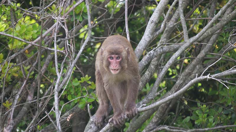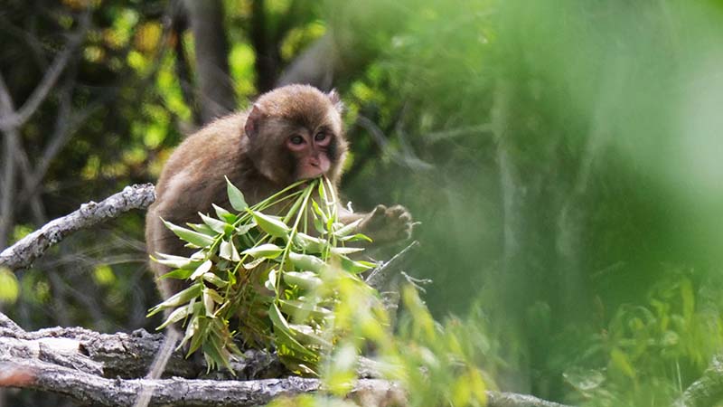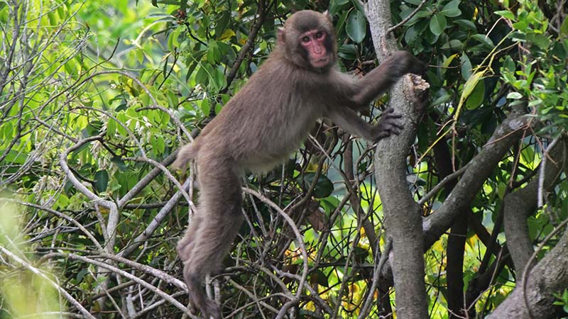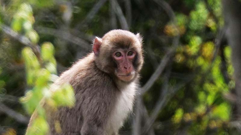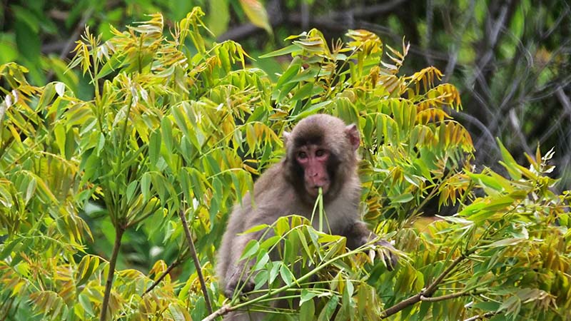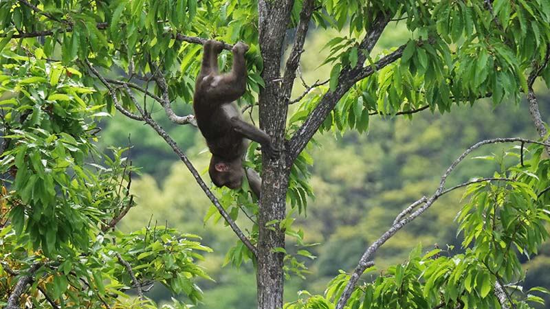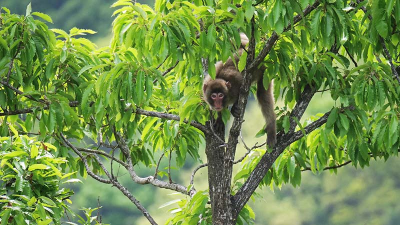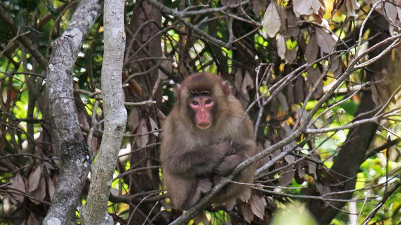 前方下方向の木々が揺れ始め、現れたのは4~5頭のニホンザル。