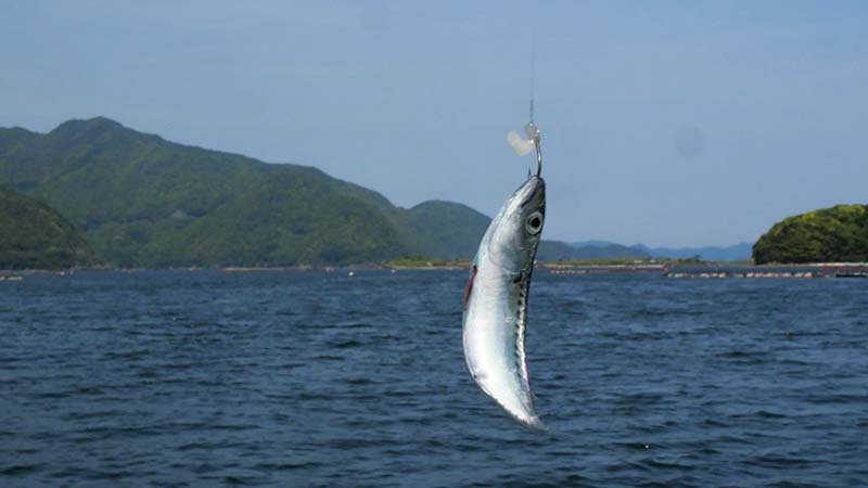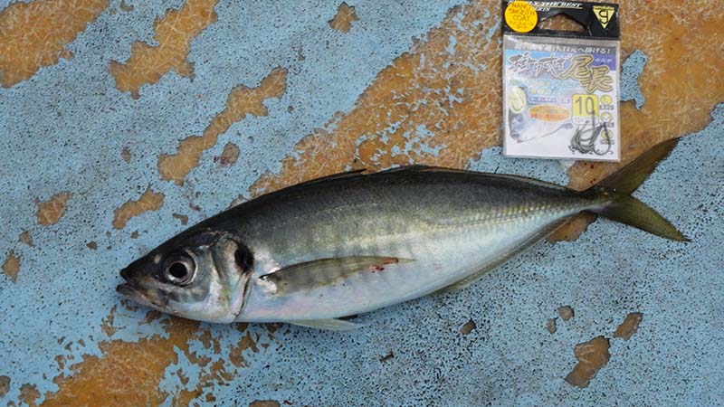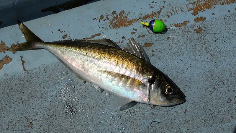 その方法で10~15mほど入れると、アジがポツンポツンと釣れます。