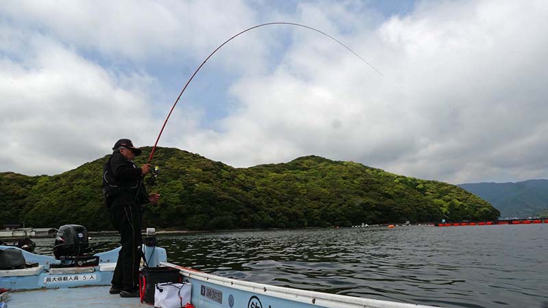 10mほど沈んだ時に道糸が少し早くなったので、フリーで道糸を送っていると一定のスピードで道糸が出る。クンと合わせると一気に下へと突っ込んでいく。