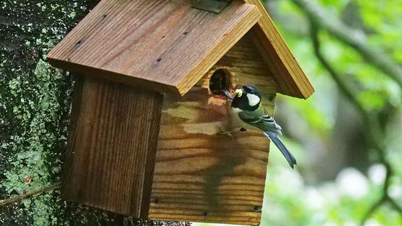 その後は坊主山へと移動。仲間も寄り道してくれて談笑していると、シジュウカラが巣箱へエサを運んでいる。25日前後には運ぶとの予想が当たっていた。