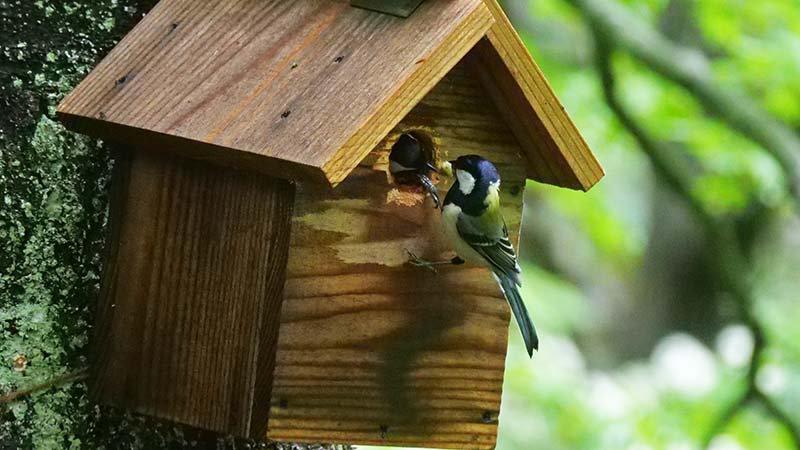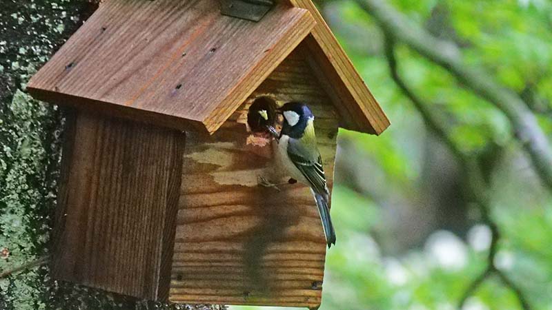 ♂♀運んでいたけど、この時は♀が巣箱内で♂がエサ運び