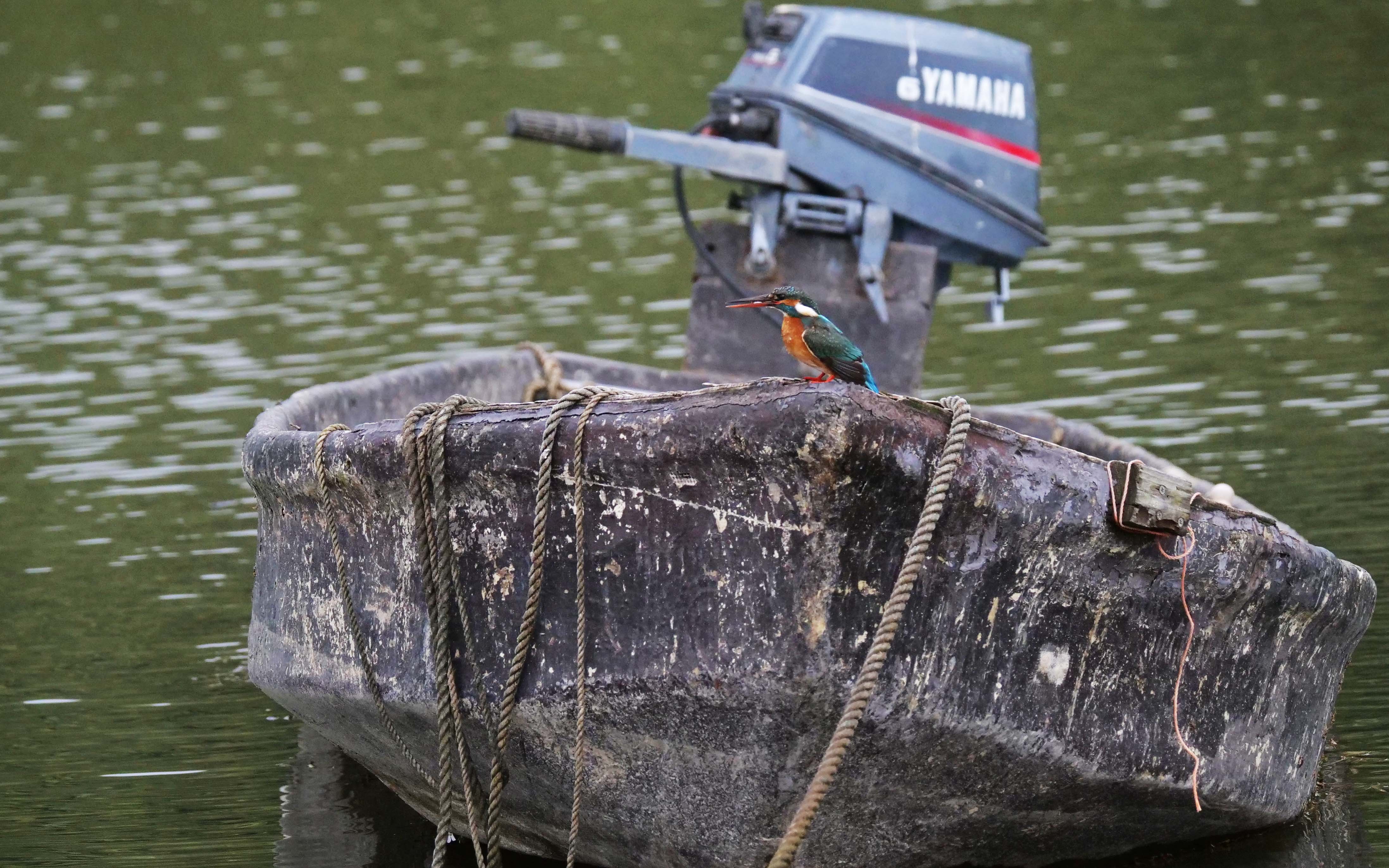舟の各所には鳥の糞が点々と有り、小さな野鳥が止まっている事も伺える。