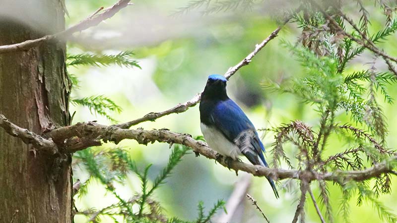 谷筋を歩くと縄張りのオオルリが偵察に来ました