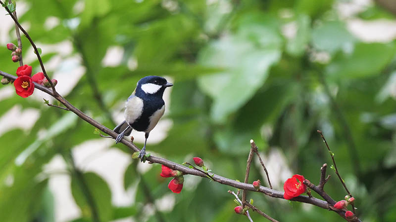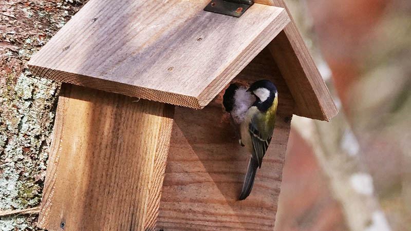するとヤマガラは慌ててその場を飛び去ると、巣箱の中からシジュウカラが出てきた。ヤマガラも物色したようですが、既にシジュウカラの住居でした。