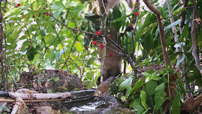 これからが楽しみになった水場、観察する時は絶対に車中からお願いします。小鳥たちが警戒するMAXは、巣の存在を他の生物に見られる事だから。