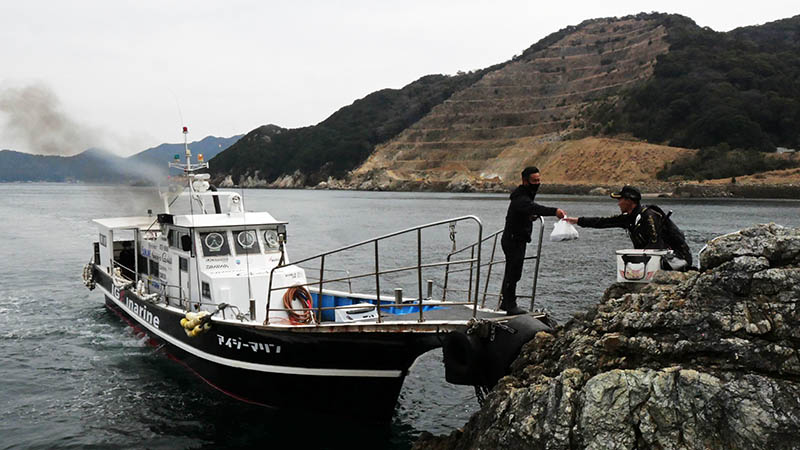 2年前からIGマリンが渡す津久見湾一帯の磯は、離れた岩礁は少ない。