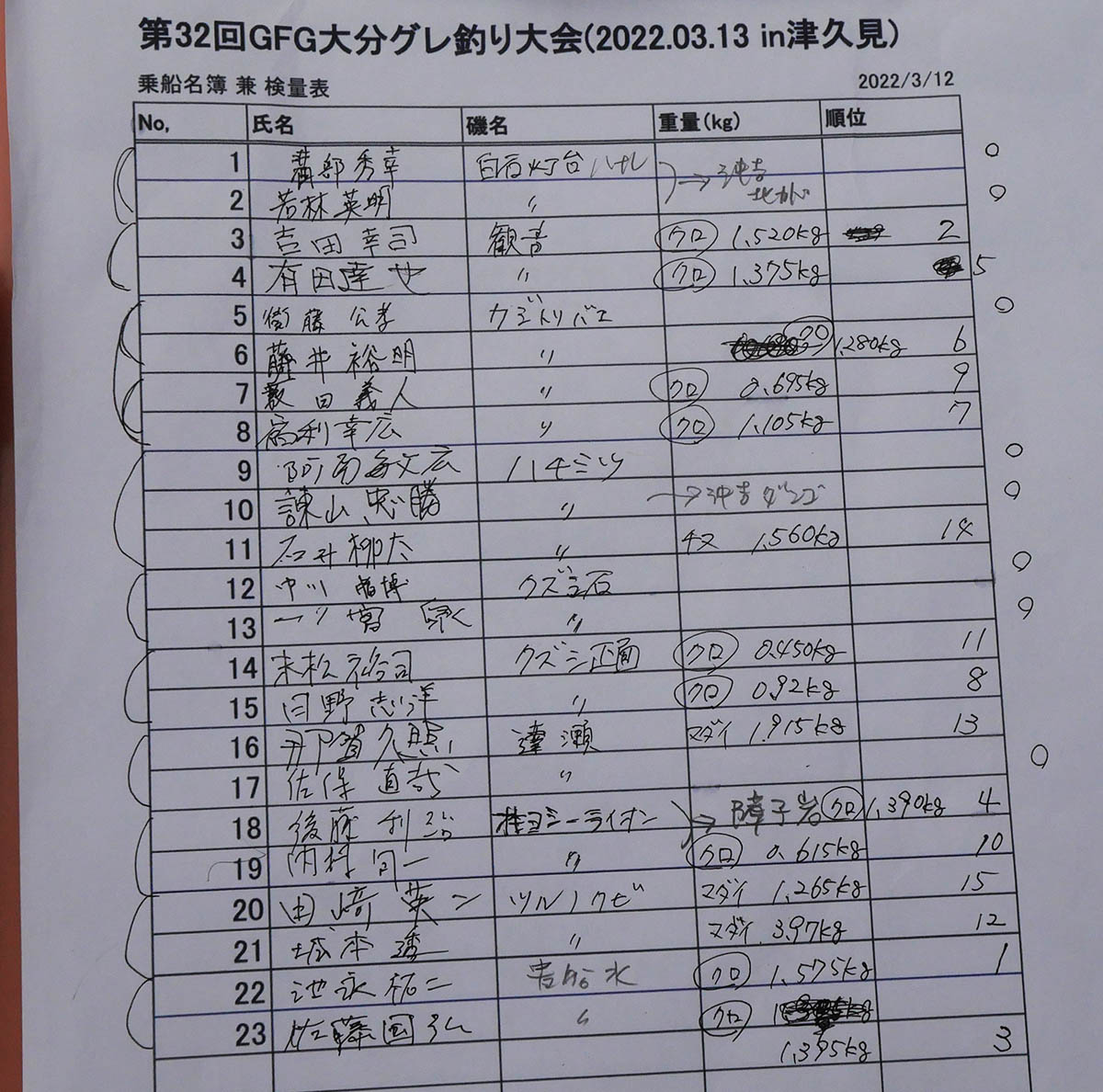 久し振りの大会にみんな楽しく釣りが出来た様で、釣果もそこそこに。