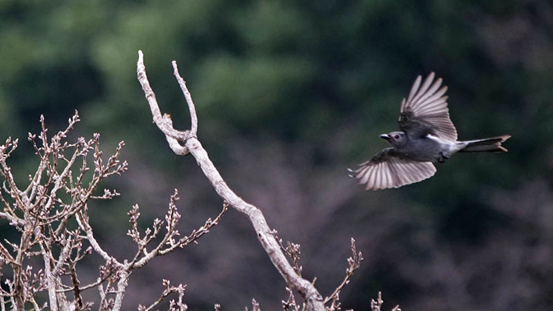 ハイイロオウチュウは8時前後に数回姿を見せ、その後は11時頃から再び姿を見せ始めた。私は午前中に帰宅の途についたので、その後どうなったかは不明。