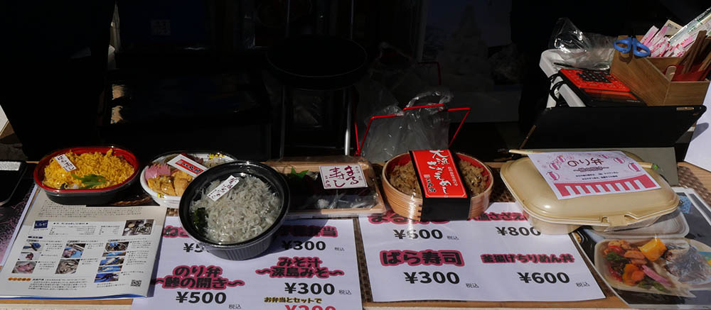 前日から空の展望所では“空カフェ”が開催されており、当日は民宿戸高が担当だったので、丸寿司と味噌汁を頂き、お土産にサザエ飯ニつと丸寿司一つを購入。