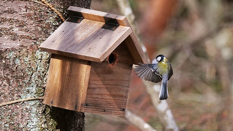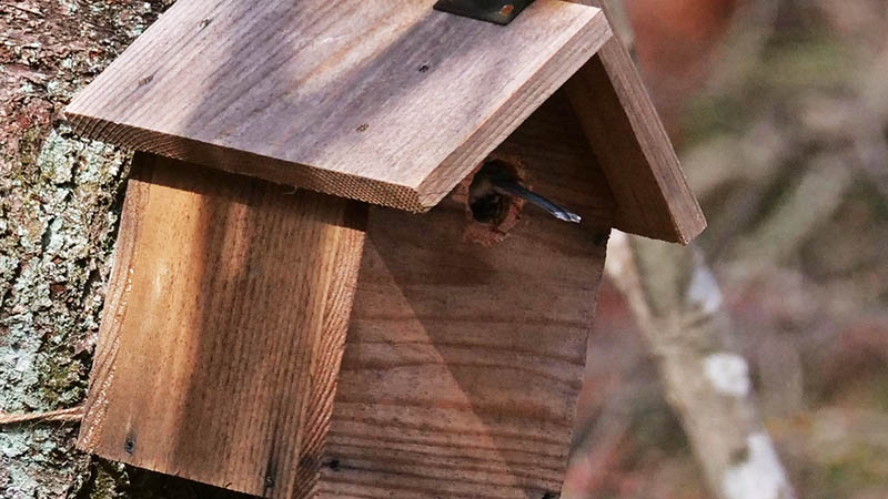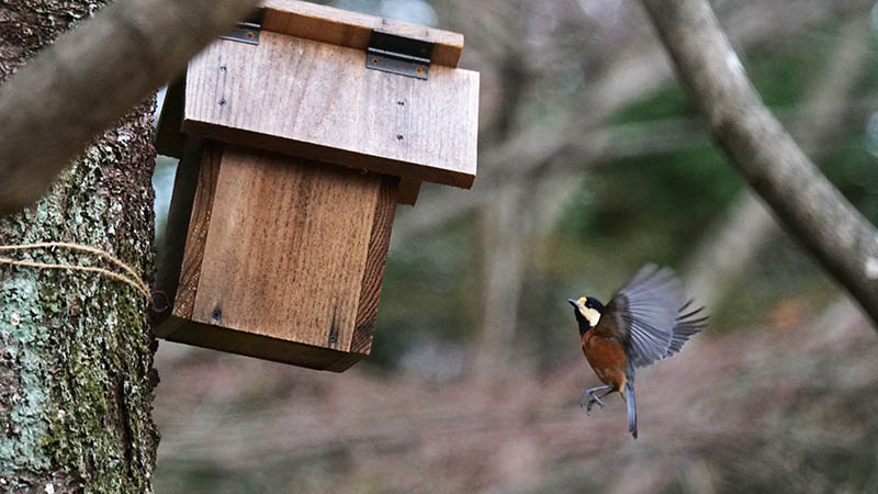他の場所の巣箱はヤマガラが物色中