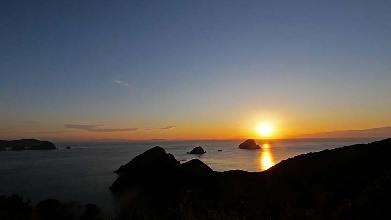 空の展望所からの日の出。海面に雲が掛かってだるまは無し