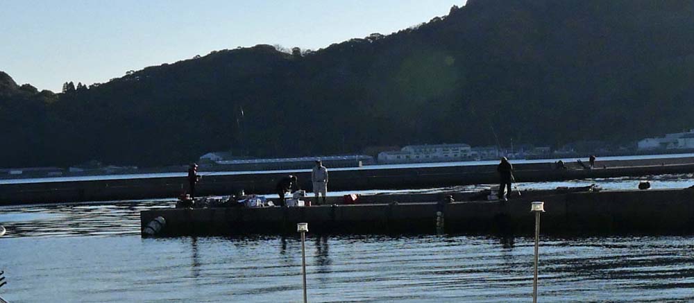 早朝から3人のアジ釣り師が頑張っています