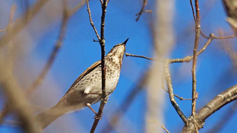 歩いている真上に4羽来たツグミ