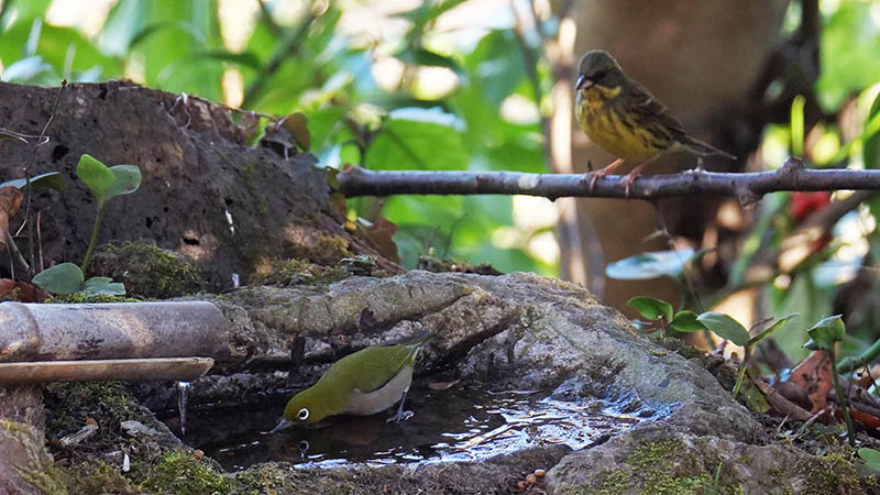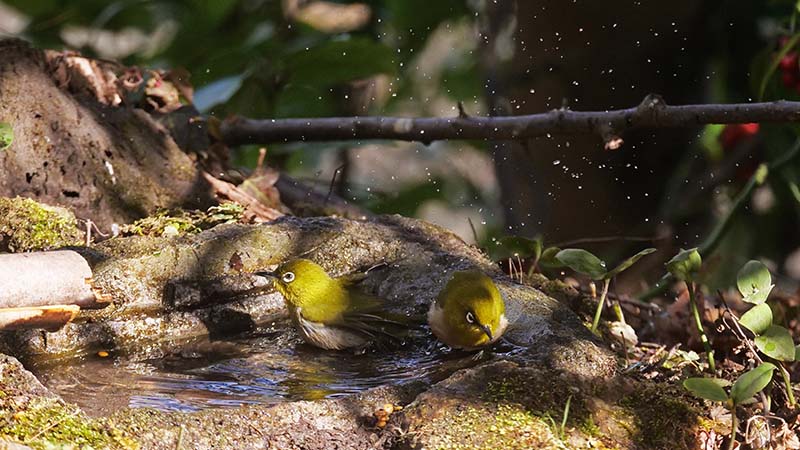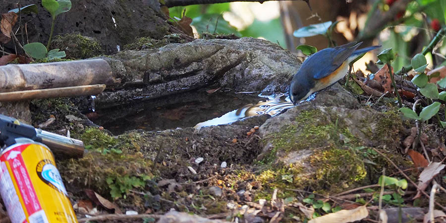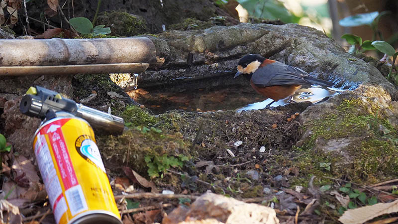 水場周辺は2月から、ストックしたハゼの実を補充していきます。