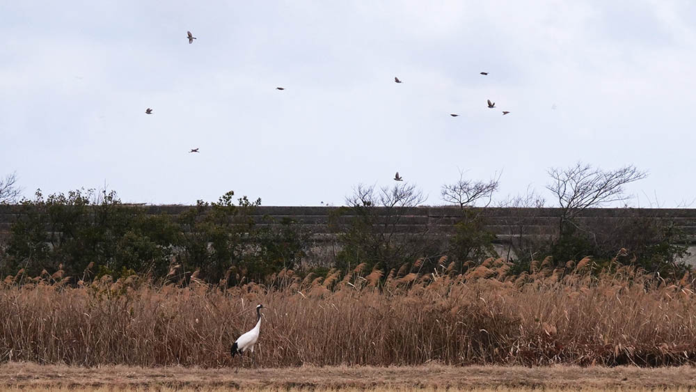 タンチョウの探鳥を3人で・・満潮は11時頃だから海には居ないと判断。