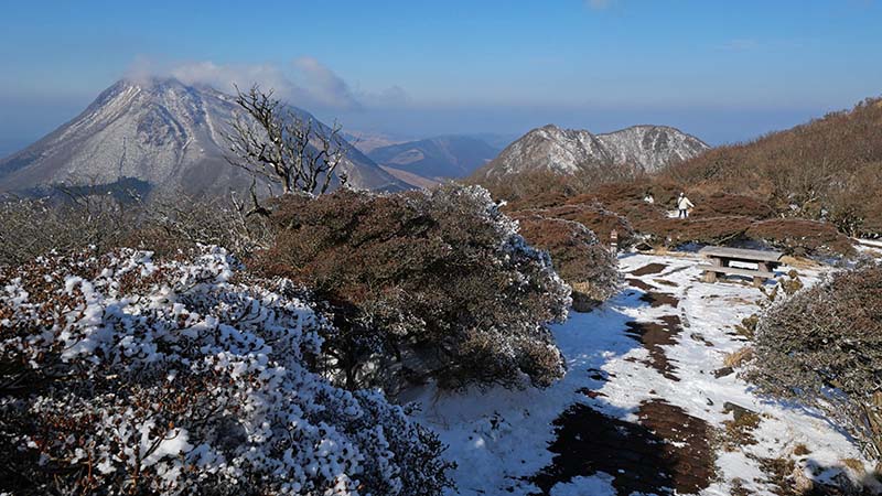ハギマシコポイントの西側(左前は由布岳)