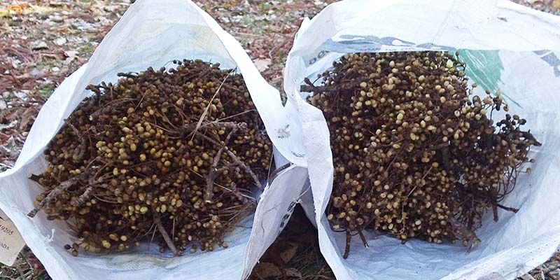 ハゼの実は種を包む乾燥した薄皮が消化される。こんな貧しい食物でも命を繋ぎ止めるのに役立っており、大きな種は糞やペリットとして体外に排出される。