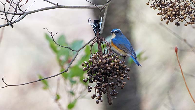 そんな実を食べる小鳥達は、メジロ・エナガ・シジュウカラ・ヤマガラ・ヒガラ・ゴジュウカラ・コゲラ・アオゲラ・シロハラ・ツグミ・ヒヨドリ・キジバト・カワラヒワ・ミヤマホオジロ・モズ・ジョウビタキ・ルリビタキなど。