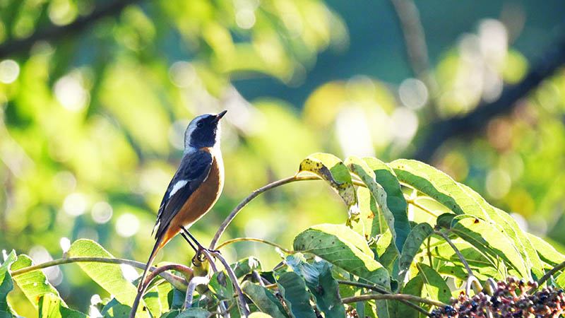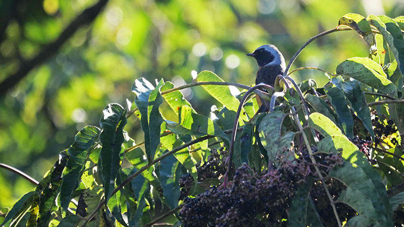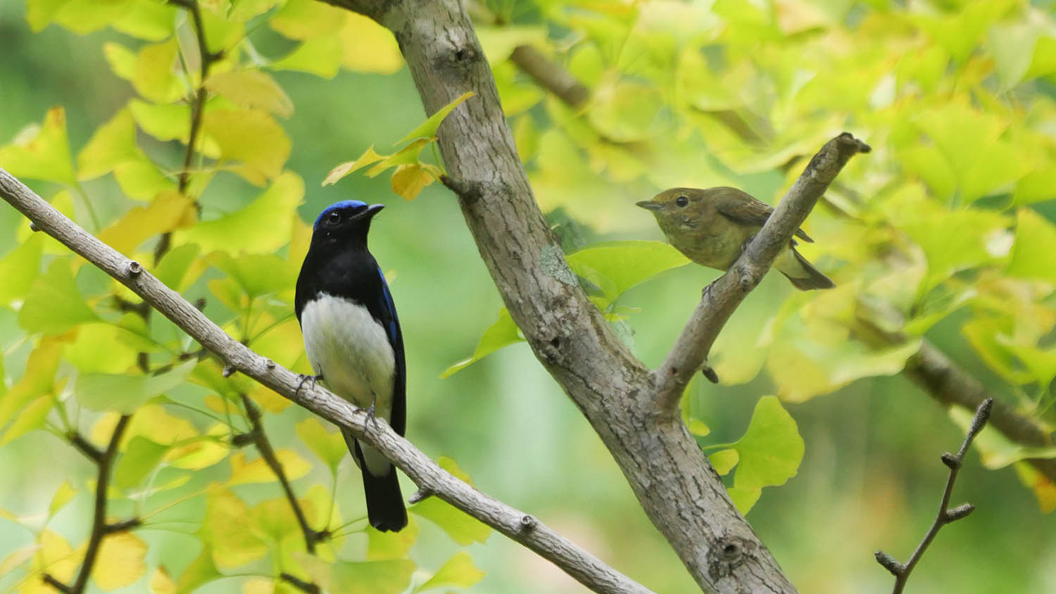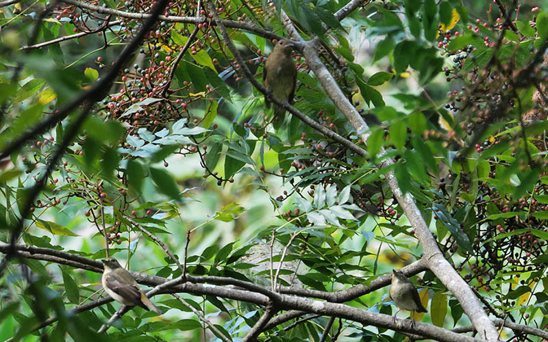 オオルリ1羽とキビタキ2羽・・大きさは全く違います