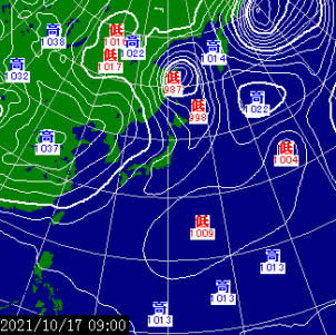 北西の強風をもたらした、16日午後からの西高東低の気圧配置に感謝。