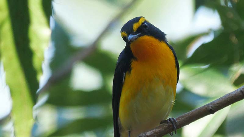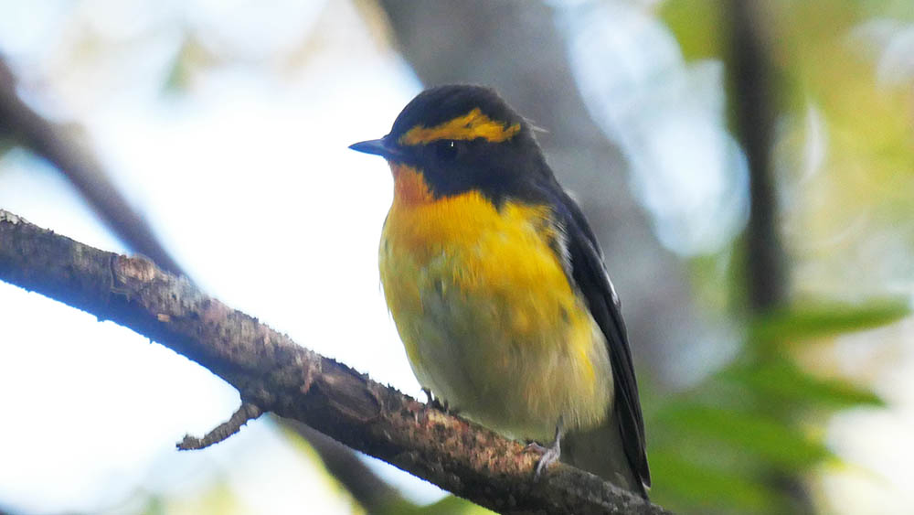 キビタキの喉から胸はほぼ一色か、まだら模様