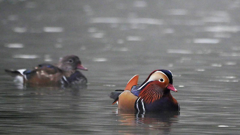 七瀬ダムで休憩中のオシドリ♂♀