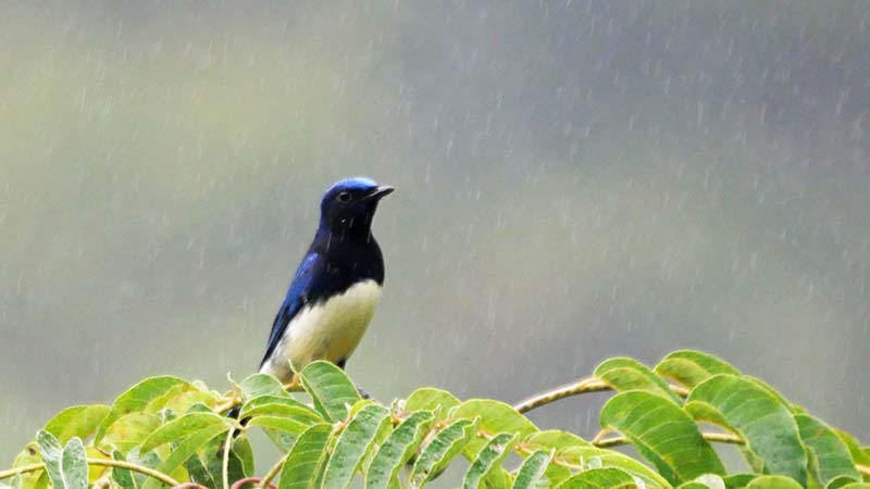 ヤマガラやシジュウカラなどは、幼鳥からいきなり大人の色合いになって若の見分けは出来ませんが、オオルリやルリビタキの♂若の見分けは比較的簡単です。対して、キビタキやミヤマホオジロの♂若は♀との見分けが難しい。
