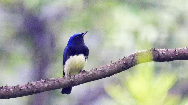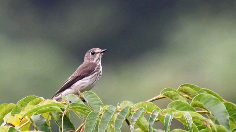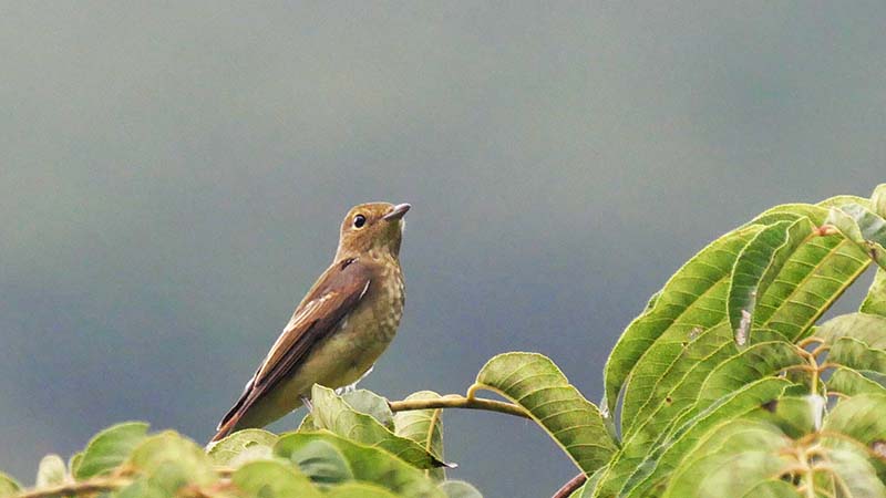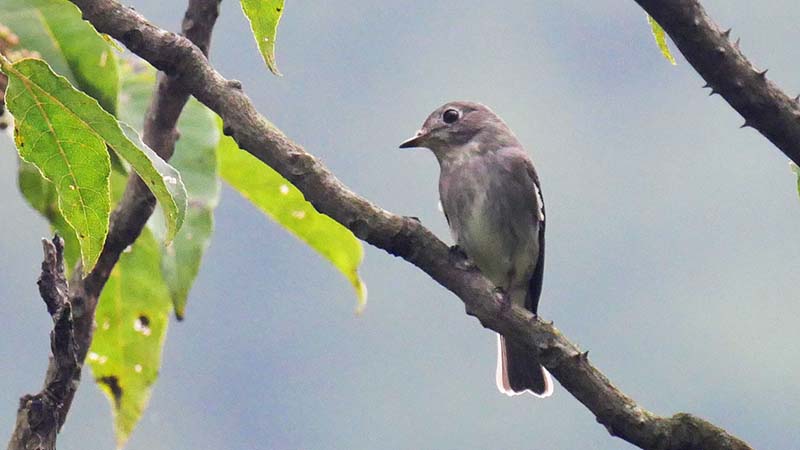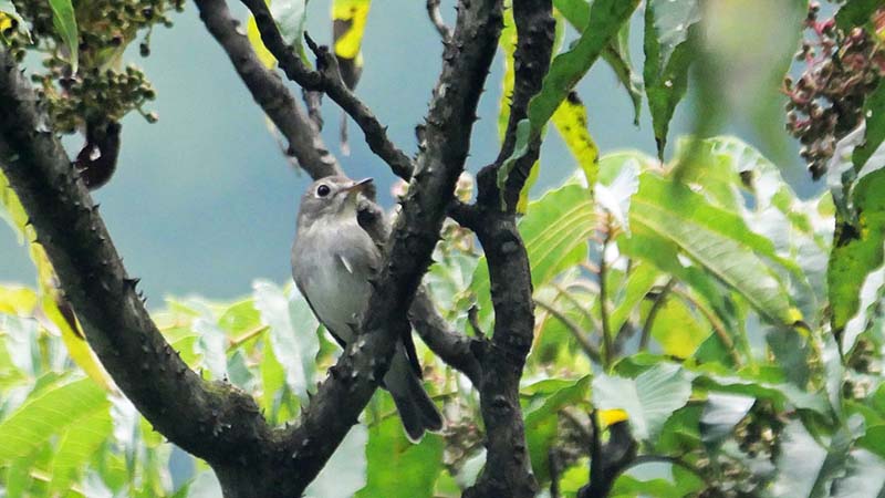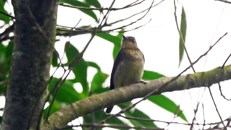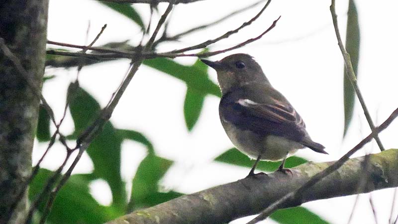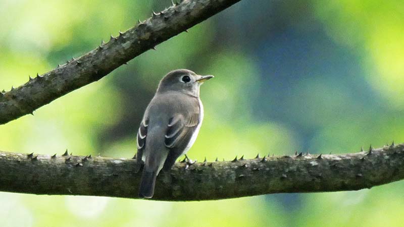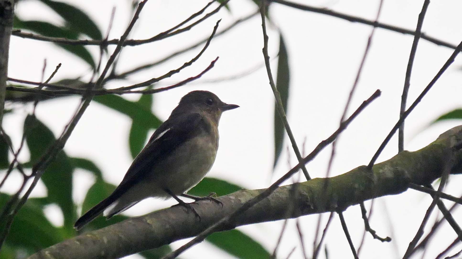 サメビタキ(夏鳥)決め手は目の後ろの骨格。コサメビタキの可能性も・・