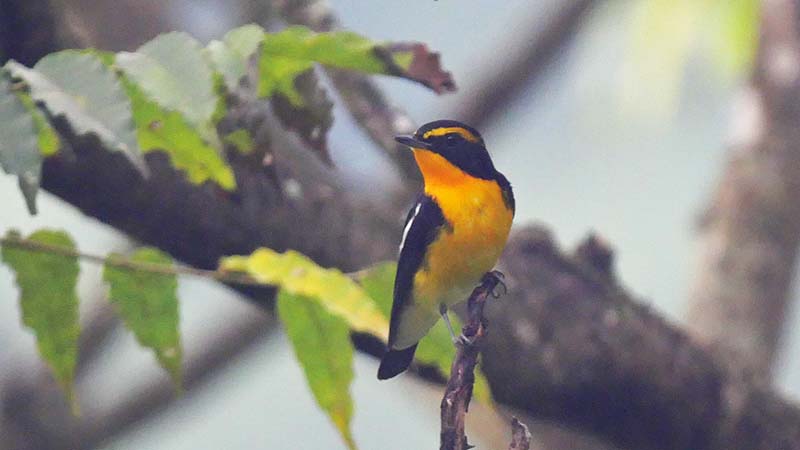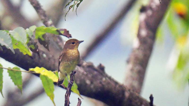 キビタキ♂若 前からだと♀だけど胸の色が決め手