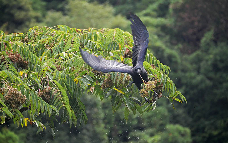カラスもカラスザンショウの実を食べる。当たり前か??