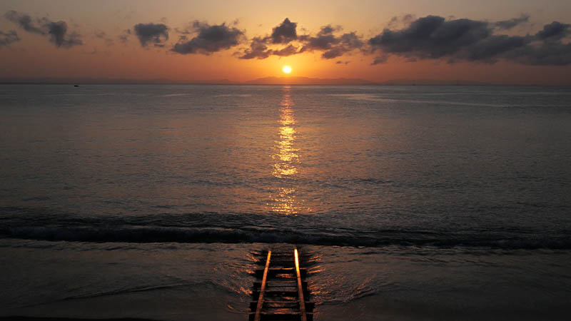 今回は佐賀関の夜工場・日の出・小鳥・鷹の渡りを一応狙っていた。鷹も気にしながら、半月と飛行機が重なるのを期待していたけど、高島の瀬群に台風16号のウネリが砕けているのを撮影していると・・