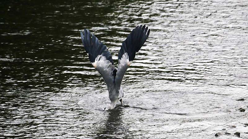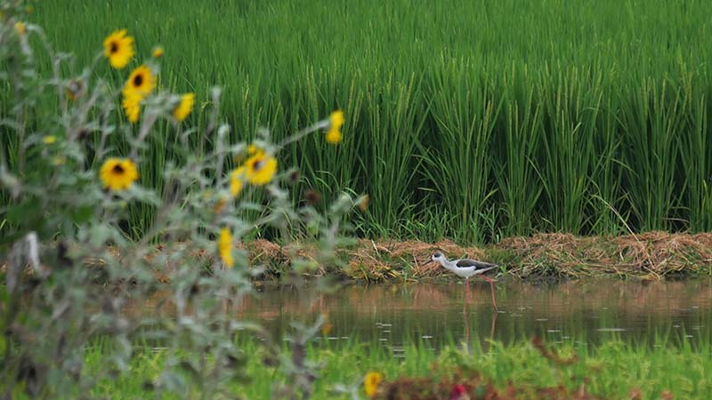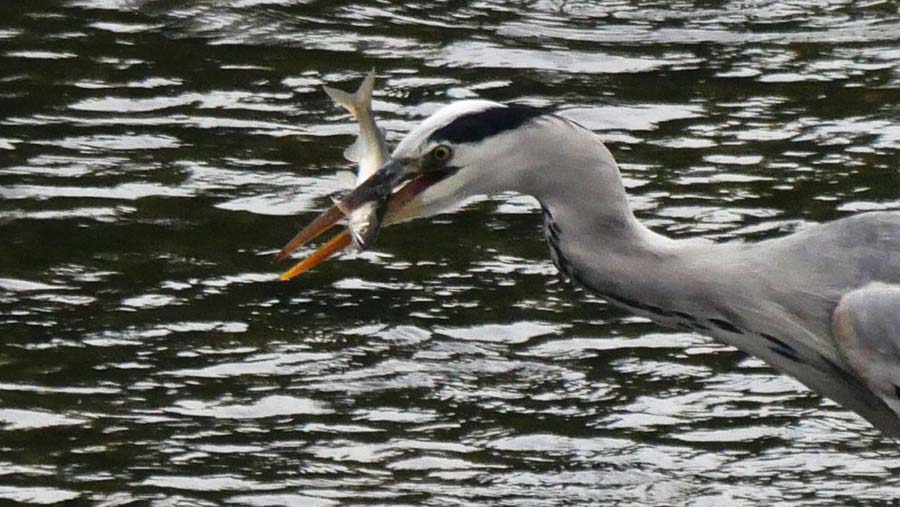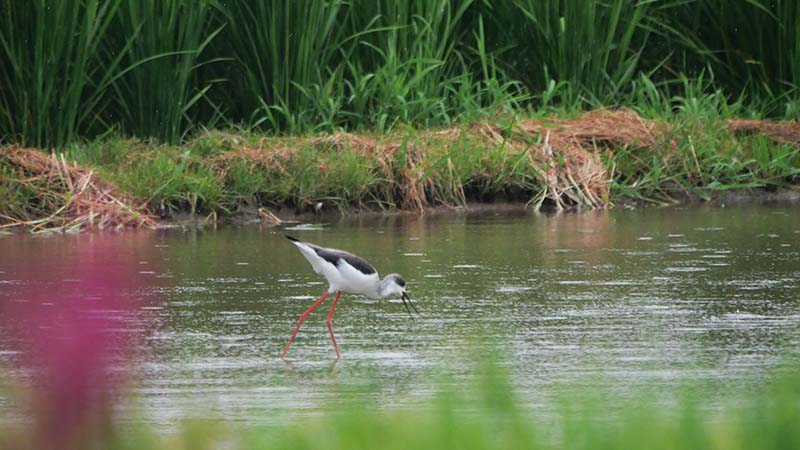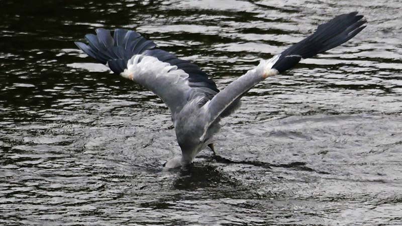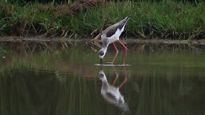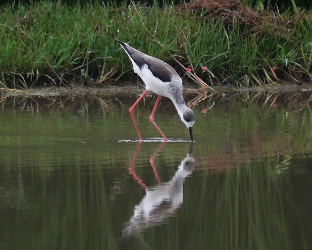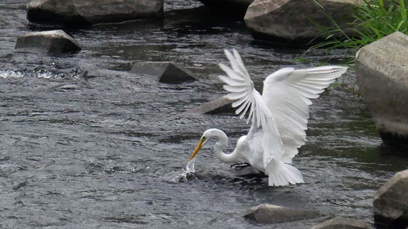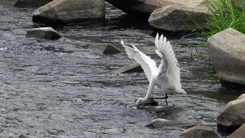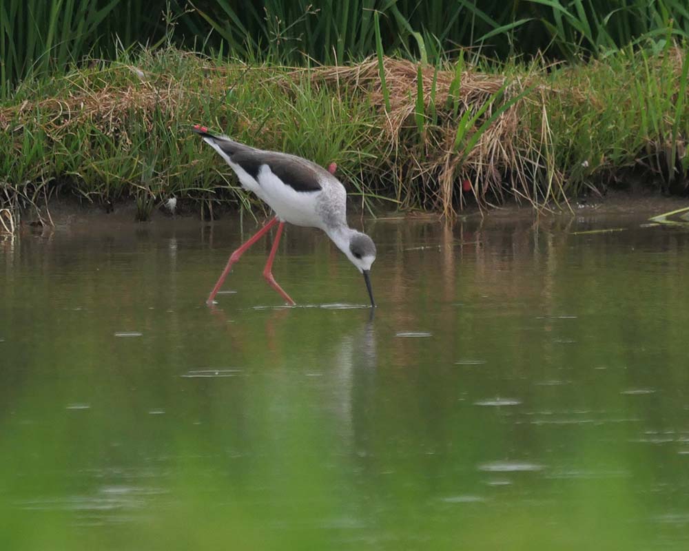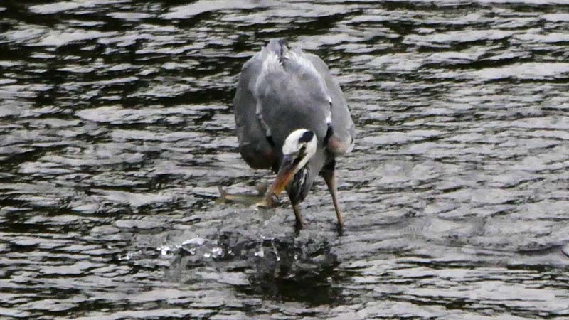 溜池に一羽が居て、水草の中に何度か突っ込んでいた。