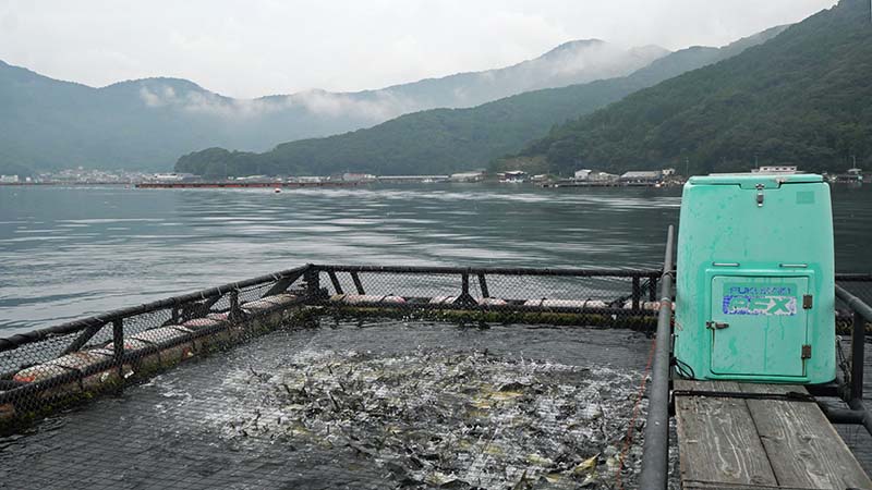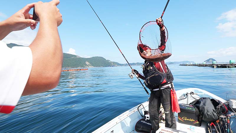 湾内生簀を諦め、沖の生簀で唯一の竿曲げはみどりちゃん