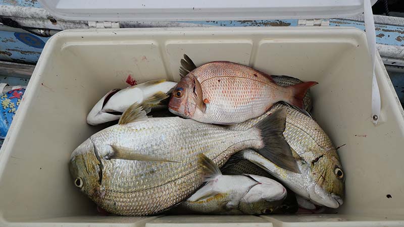 朝の湾内は養逃げマダイや小型のマダイに終始、大型は来ない。