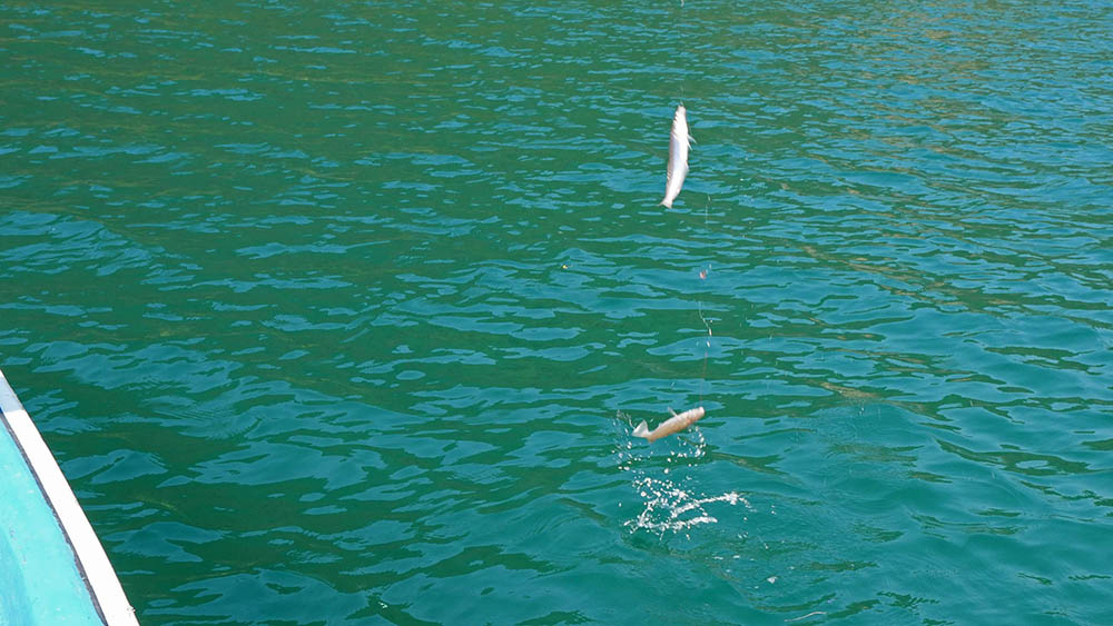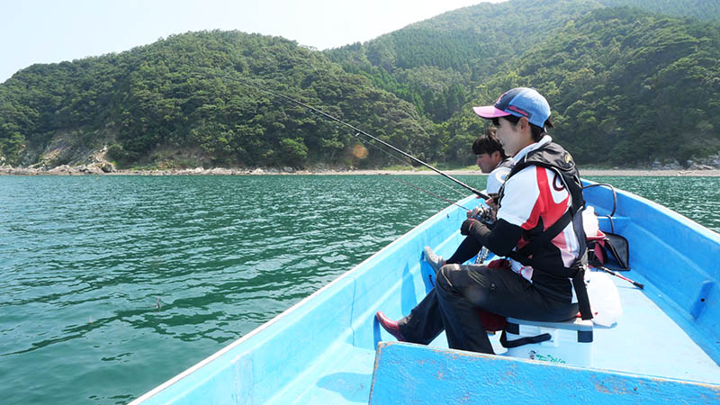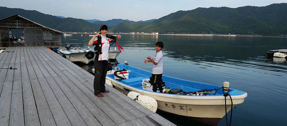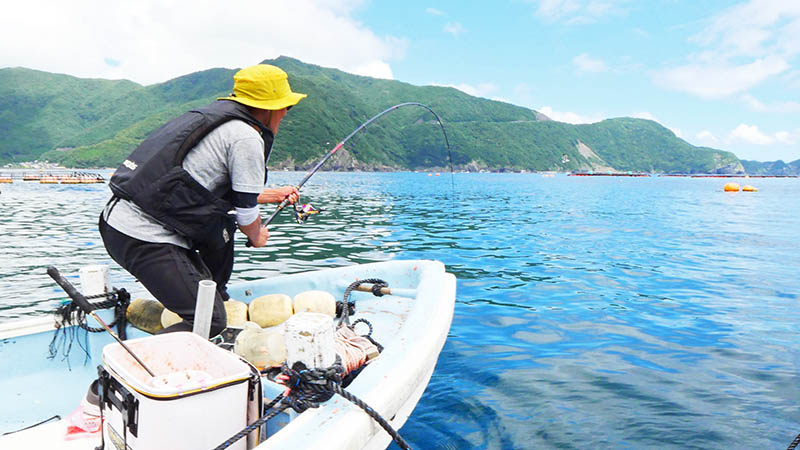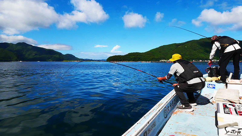 今回は二人に竿を振ってもらいましたが、9時頃までの1時間は一度もエサを取られること無く、やむなく沖の生簀へと移動です。