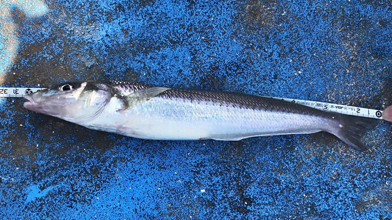日差しの強い海上ではスイカの補充も良く効いて、場所移動直後に大型キス!メジャーを当てると丁度30㎝。これ迄10数回来て、尺上は同行者が合計3匹ほど釣っていますが、私のMAXは29.7㎝だったので自己記録のキスになりました。