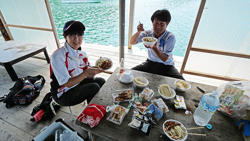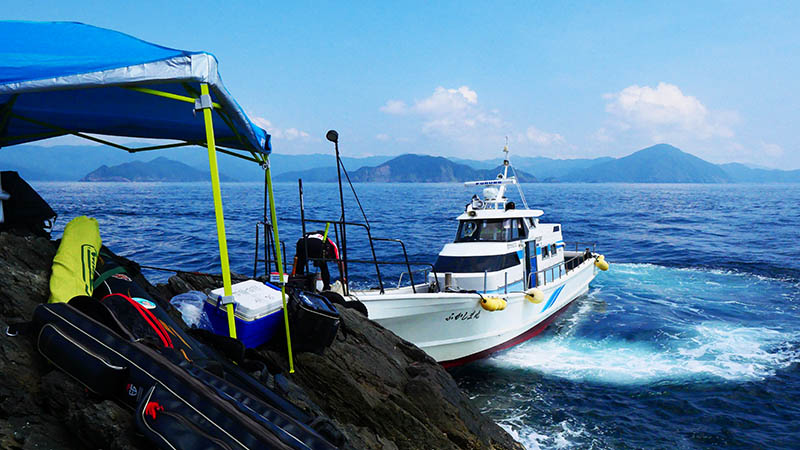 出港7時~16時納竿の一日でしたが、やはり海の上は磯に比べると断然涼しい。よって、持参したパラソルは一度も使わず、昼食時間以外は釣り三昧。