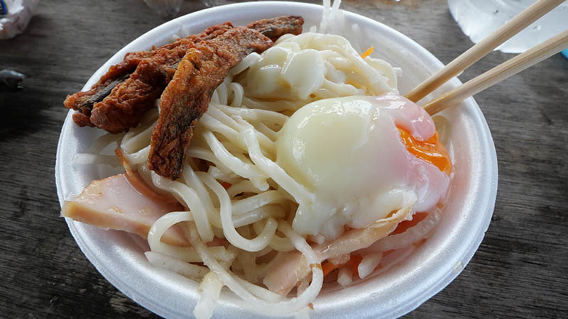 暑い日中は、船着き場に戻って日陰の中で冷たいうどん。