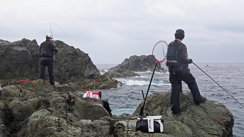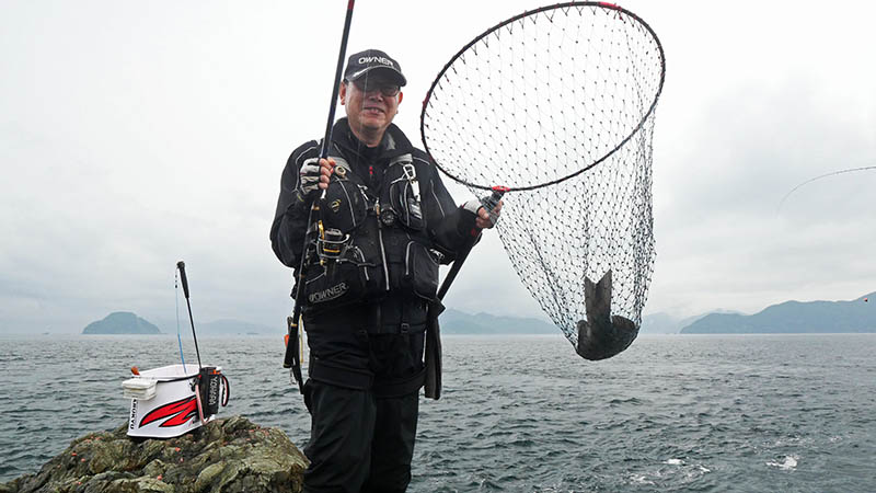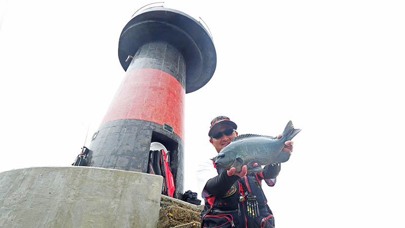 下げ潮が勢いを増すと、磯際から良型クロが湧く見事な磯。更にルアーマンが捕れないサイズに遭遇する、白石灯台瀬に上げてくれたIGマリーンの配慮に感謝。