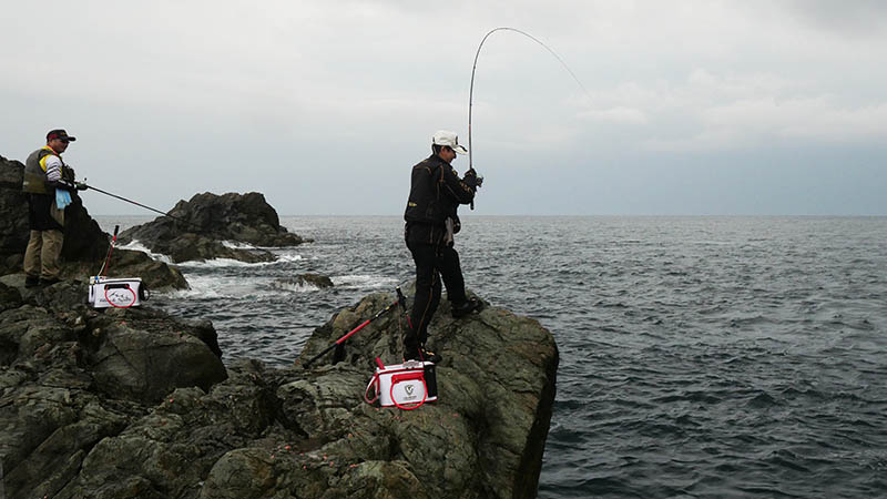 正喜会長の磯からの釣りでイサキ