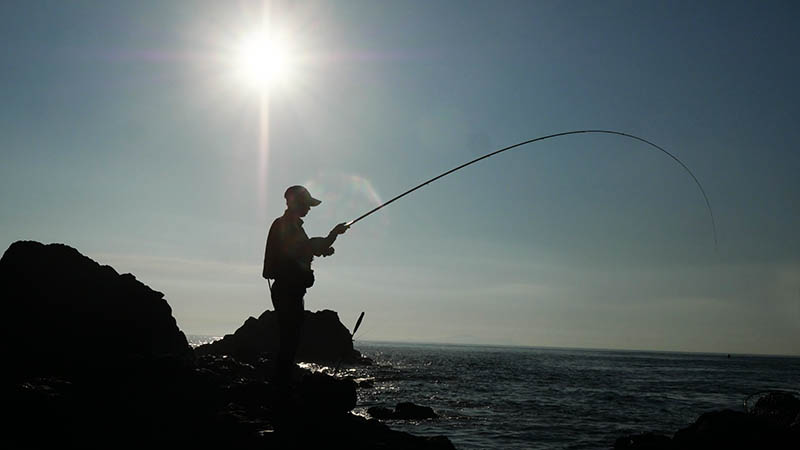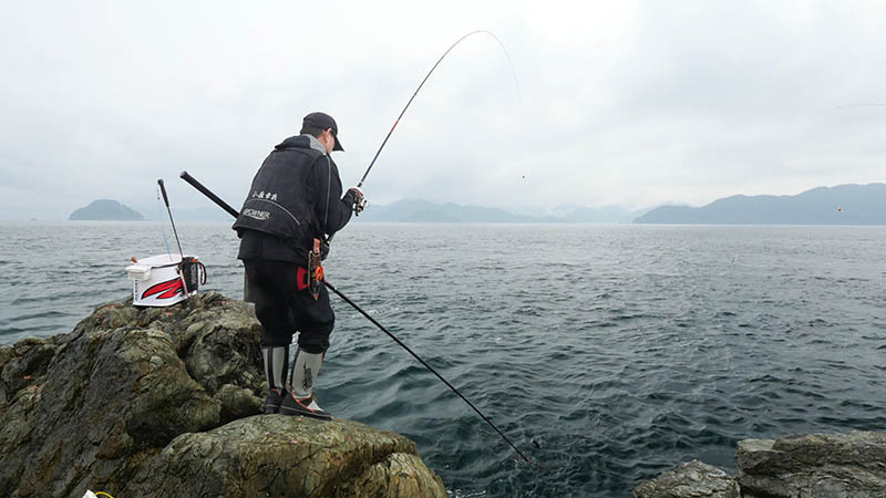 下げ潮の良型で竿を曲げる